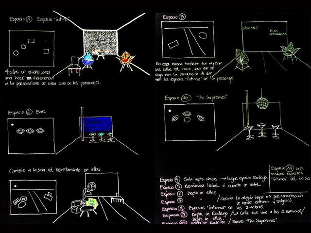 Work description: Since the story develops in various places (e.g. apartments, bar, shop, super market), the idea for the stage direction was to make a dynamic theatrical play with fast transitions between the scenes. For that reason the set design was designed to be more referential than realistic.